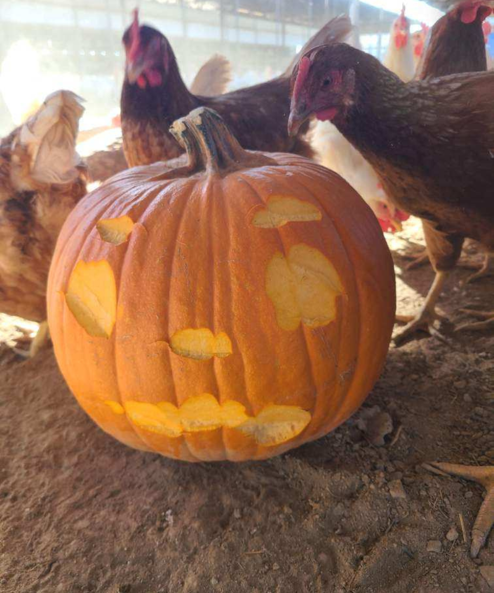 Once Halloween is over, don't throw away your carved pumpkin. Your chickens will still enjoy pecking at it and nibbling on the flesh. And when they're done, you can compost the remaining pumpkin for your garden. It's a win-win situation for you, your chickens, and the environment.