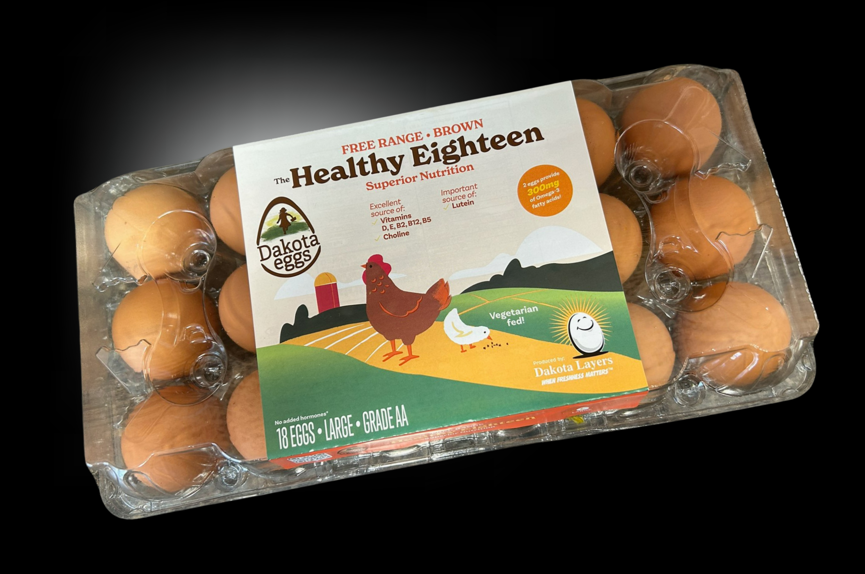 Our free-range brown eggs are available in a large size. You can purchase them by the dozen or 18 count in plastic packaging.