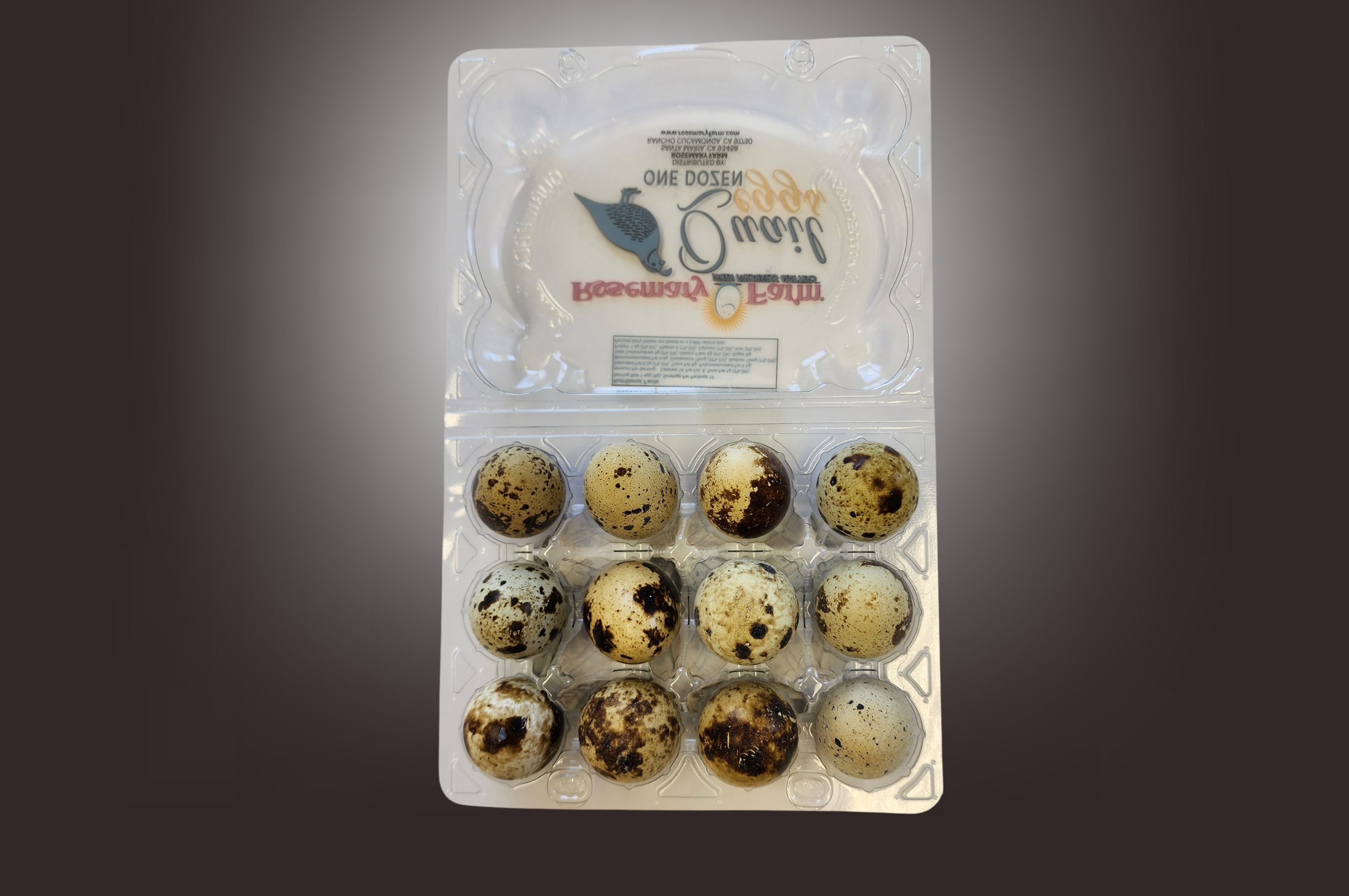 You can find our small quail eggs in plastic and overwrap packaging, sold in counts of 12 and 20.