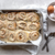 - From the long side, roll the dough into a log and slice it into 1” slices. You can cut off the ends and discard them if they are too small or have no filling inside. Place the pieces with the cut side up in a 9×13” pan and leave them again to rest for 30 mins with a covered teal towel in a warm spot.